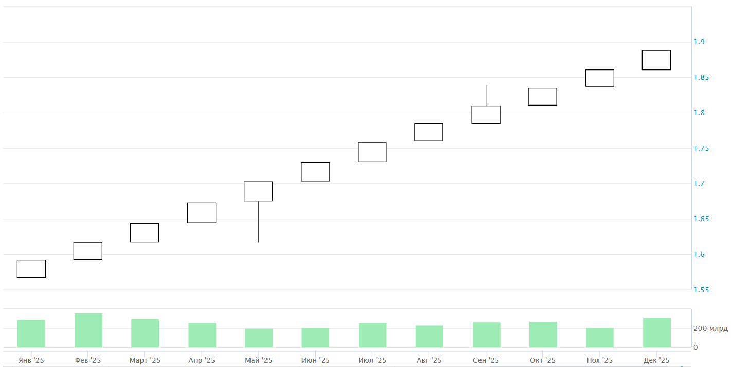 Средняя доходность портфелей денежных фондов по итогу 2025 несколько ниже +20% годовых, что тоже очень хорошо для инструмента с ежедневным начислением процентов.